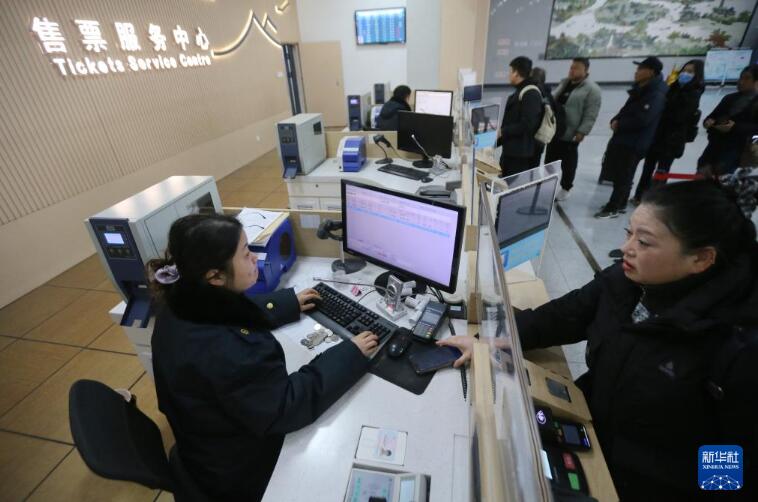1月19日,旅客在江蘇揚州東站售票窗口購買火車票。