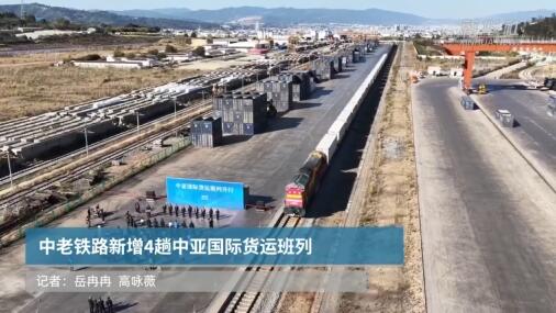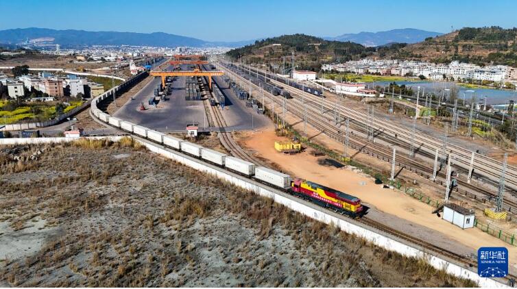 1月26日,中老鐵路中亞國際貨運班列在云南玉溪研和站發(fā)車(無人機照片)。 1月26日,中老鐵路新增4趟中亞國際貨運班列,首趟班列于當日16時許從云南玉溪市研和站駛出,終點站為老撾萬象南站。 據(jù)介紹,此次新增的中老鐵路中亞國際貨運班列將分別從玉溪研和站、昆明中誼村站、玉溪南站等始發(fā),每周至少開行4趟。 新華社記者 高詠薇 攝