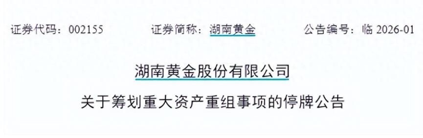 金股份有限公司(以下簡稱“湖南黃金”)披露,公司正在籌劃發行股份購買資產并募集配套資金。為了維護投資者利益,該公司股票自2026年1月12日開市時起開始停牌,預計停牌時間不超過10個交易日,公司預計在1月26日前披露交易方案。