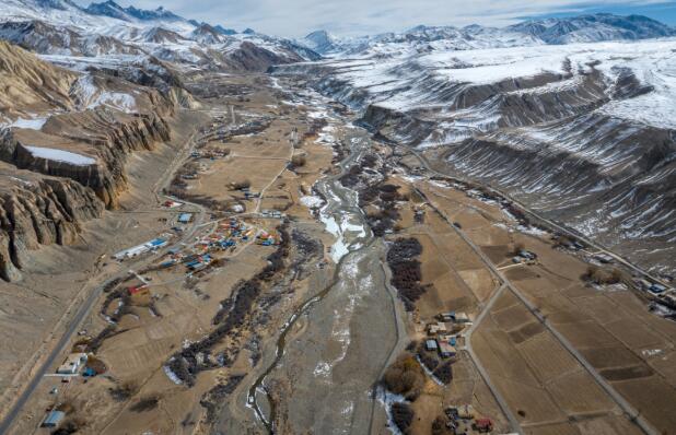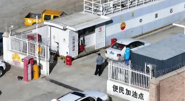 瓦恰加油站位于盤龍古道出口3公里處,是瓦恰鄉的“能源驛站”。圖為瓦恰鄉所在位置俯瞰。 春節前夕,高原最低氣溫已降至零下二十多攝氏度。我們抵達這里,探尋兩個年輕人與這座小站的故事。 一條能源線,結束了80公里的奔波 開車從盤龍古道下來,出口處向右再開上幾分鐘,就來到了加油站所位于的瓦恰鄉庫熱格村,如果不是同行者告知,記者還沒注意加油站已經到了。 瓦恰站很“小”,沒有中國石油標準站醒目的罩棚,甚至沒有像樣的房子,3個野營房、1個撬裝罐、2把加油槍,加上2名加油員和1名安保員,就是它的全部。 但它又很“重”,在2019年建成投運前,當地村民給車加油,要驅車前往80公里外的塔縣縣城,如今的小站承擔起鄉親們所有的能源保供職責。